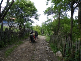 Dupa reunirea grupului s-a hotarat sa mergem spre catunul Cheia si de acolo pe triunghi albastru catre Botani si Tecsesti. Traseul urca o vreme prin padure si dupa o jumatate de ora de mers dam de un inzvor. In satul Botani ne intampina vacile si cainii putinilor sateni ramasi. Din sat, exista doua variante ale traseulu- de-a dreptul peste deal si prin padure sau ocolit pe marcaj. Preferam sa mergem la sigur, mai ales ca este o ora inaintata. Traversam un fir de apa si incepem spre stanga prin padure urcusul. In cele din urma dam de un drum forestier care spre stanga ne duce exact in satul Tecsesti. Incepem sa ne amintim- fiecare cate ceva din tura de acum 3 ani dar timpul isi spune cuvantul. Recunoastem casa lui Avram Ianos de la care am cumparat branza in 2006 si caruia nu i-am trimis nici pana azi poza fagaduita. Ma roade o vreme constiinta dar peisajul si lumea satului -ramas parca impietrit in tot acest timp imi dau un sentiment de liniste. Urmam intr-un cantec (sau in multe, schimbate frenetic :) )traseul cruce galbena care urca printre casele oamenilor si coboara apoi prin padure pana aproape de Cabana Ramet.